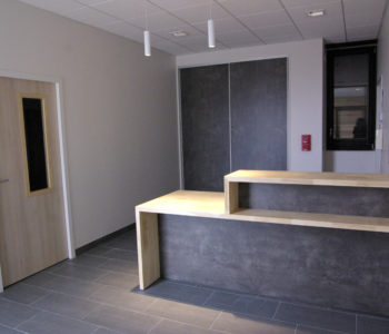 La commune souhaitait avoir une construction traditionnelle avec une charpente en bois et des tuiles en teinte ardoise auxquelles nous avons apporté un regard différent en y ajoutant une grande baie vitrée plein Sud et des menuiseries fixes toute hauteur. Les menuiseries extérieures sont en bois provenant de sources régionales. Le bâtiment répond à la réglementation thermique RT 2012 et est à ce niveau très bien isolé. Les isolants sont naturels et provenant de produits recyclés (chanvre + coton). Les peintures utilisées sont à teneur réduite en COV et en phases aqueuses.