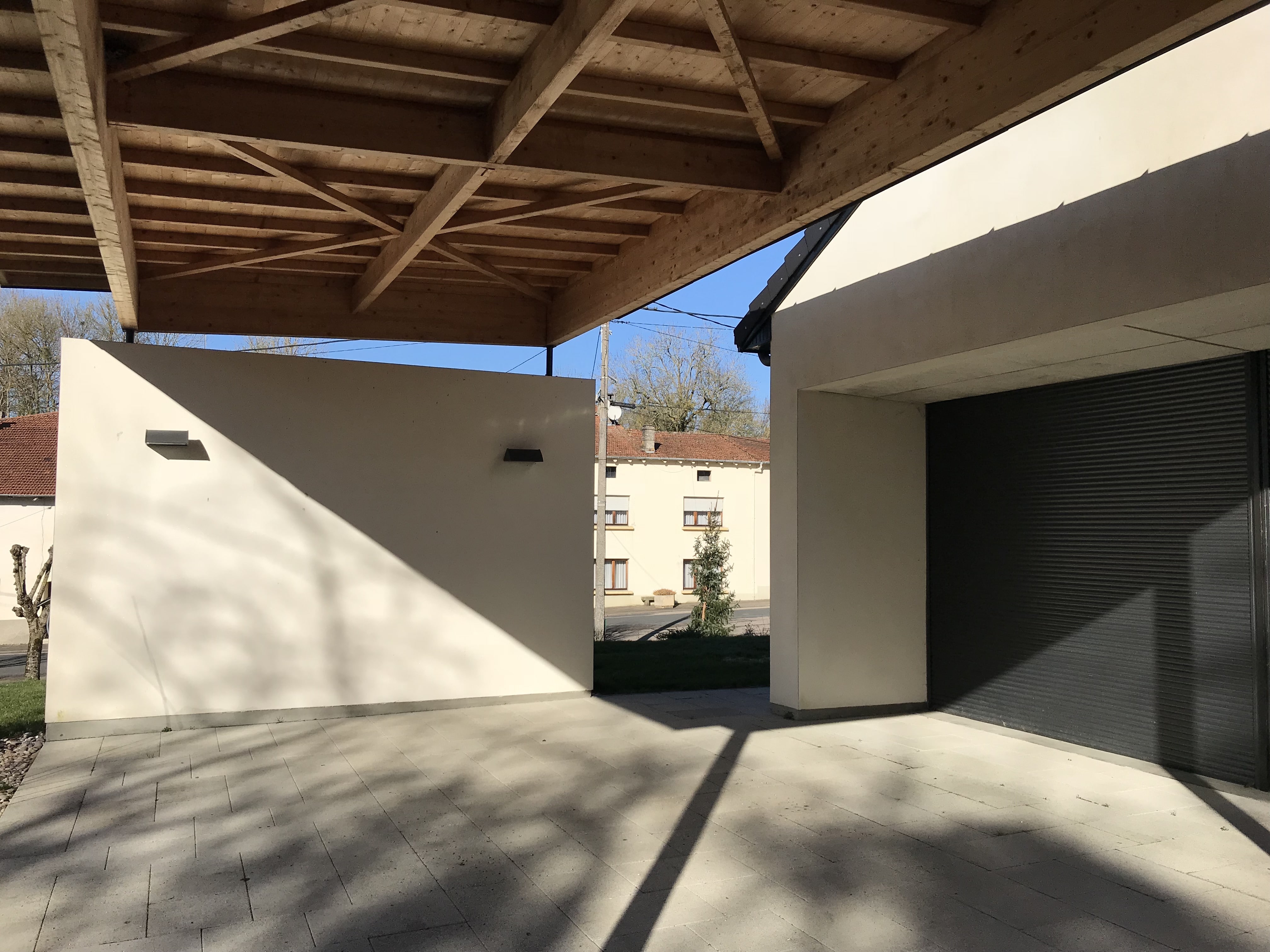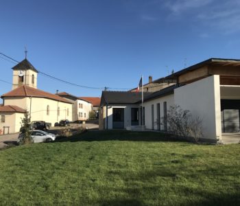 Le projet de la mairie est situé au cœur de la commune en face de l’église. Ce bâtiment de plain pied a une architecture simple et composée de deux volumes qui s’imbriquent pour créer le hall en leur centre. Ces deux ailes occupent des fonctions distinctes et peuvent fonctionner séparément. Cet édifice aura plusieurs fonctions : celui de la mairie avec le bureau du maire et le secrétariat et également la salle de convivialité ou salle du conseil accueillant des événements ponctuels ; cet espace se prolonge sur l’extérieur avec sa terrasse couverte. Des sanitaires dans le hall servent aux deux fonctions principales de ce bâtiment.