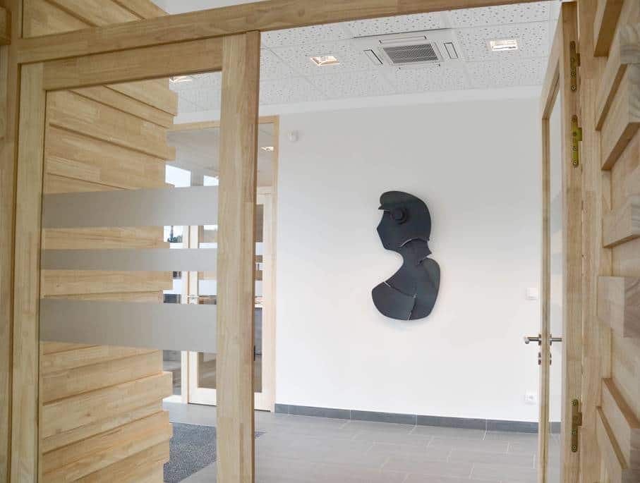 La façade d’entrée parallèle à la grande rue est orientée au nord, il y a donc peu d’ouvertures de ce côté. A l’Est une seule vue pour le secrétariat est réalisée. Le bureau du maire s’ouvre au Sud et la salle du conseil possède deux orientations : Sud et Ouest, avec des débords de toitures pour favoriser la thermique d’été.